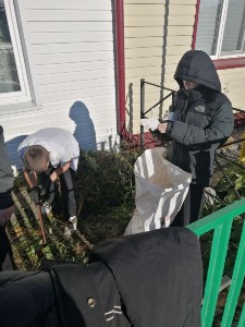 Ребята привели в порядок двор и палисадник , выполнили ряд необходимых работ по дому и сердечно поздравили её с приближающимся праздником.
