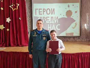 14.04.2026 года в торжественной обстановке в школе-интернат майор внутренней службы, заместитель начальника 24-го пожарно-спасательного отряда Главного управления МЧС России по Тюменской области Иван Сергеевич Парамонов наградил обучающегося 5в класса Виктора Гусева за проявленное мужество при пожаре. Виктор вывел сестру из дома в безопасное место когда почувствовал запах дыма.Поступок ученика стал результатом не только его личных качеств, но и системной воспитательной работы.